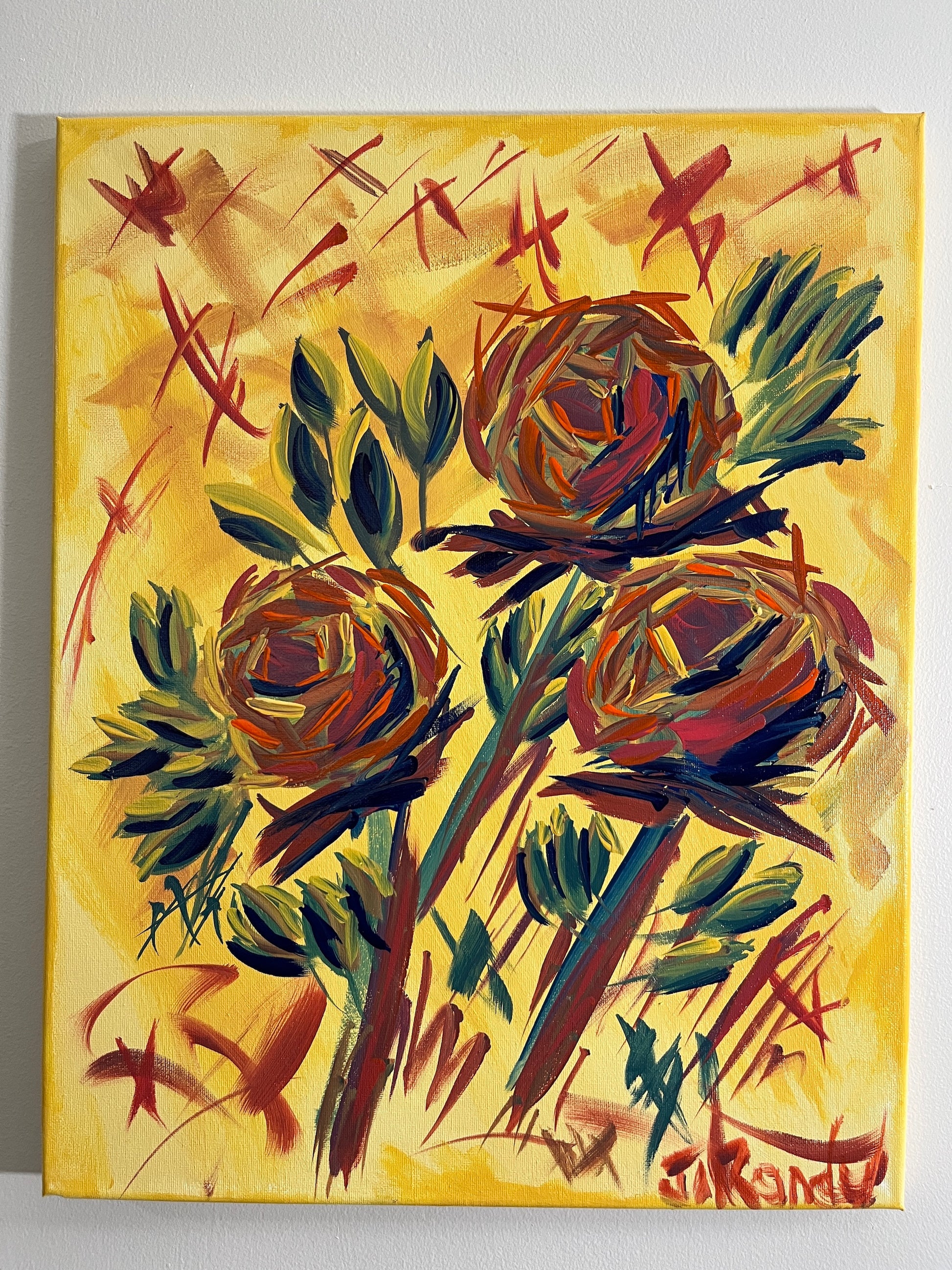 This painting is a trinity—a unity of community and individuality in one. It belongs to a series that emerged in 2025 with an unexpected power, as flowers spilled onto the canvas after the artist's many years of service to others in a life characterized by silence and solitude. These works are stories of transformation, of psychodynamic energy for change and co-creation. 'Composed' is a testament to that journey, a celebration of resilience and the rediscovery of a vibrant inner world. It is a significant piece for a collector who values art with a deep, personal story of renewal and purpose.
